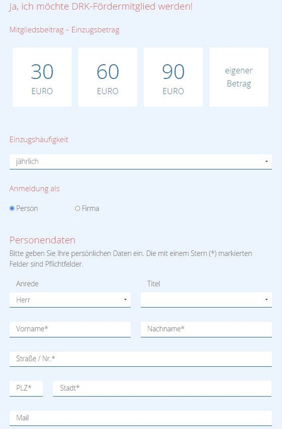 Spenden und Beitrittsformulare in den Musterwebseiten für das DRK eingebunden