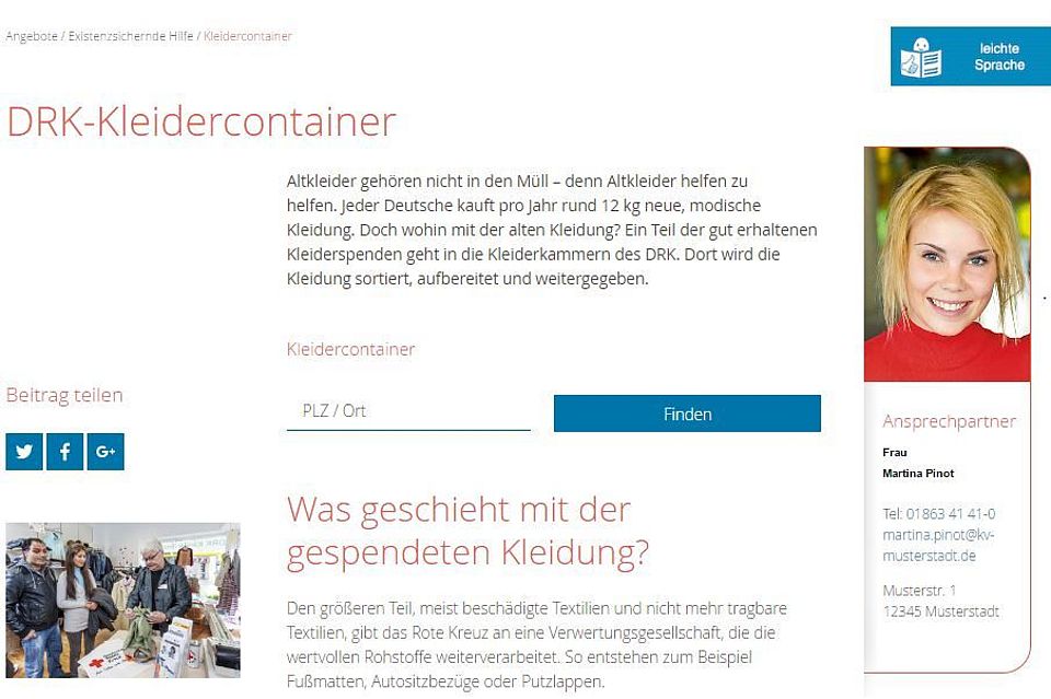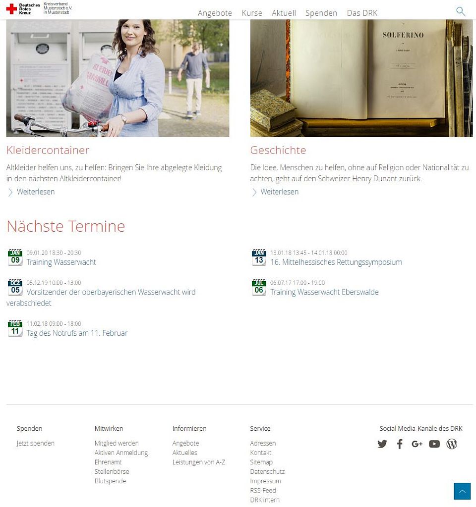 • Social Media-Kanäle des DRK im Footer: